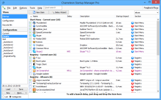 After you launch Chameleon Startup Manager it will display all configurations in a pane on the left, all programs will be listed in the second pane on the right, and a additional information about every program will be given below.